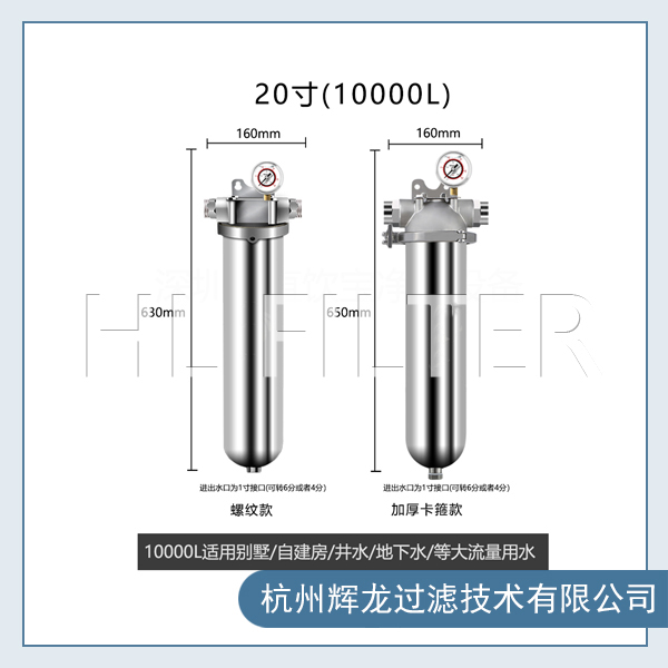 在设计上,内置滤芯一般以10寸为主,20寸为辅,30寸、40寸较为少见。